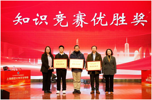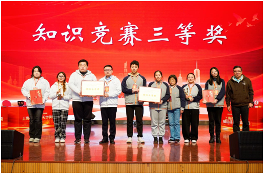 上海杉达学院党委副书记、纪委书记、工会主席陈暐为“2024年上海民办高校师生学习贯彻习近平新时代中国特色社会主义思想知识竞赛”二等奖的代表队颁奖。