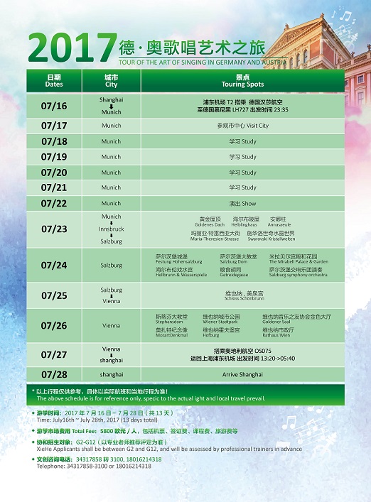 After two years of successfully organizing top music and dance study-tours in Austria and Italy, Xiehe Creative Arts Center is proud to offer our students three new summer study-tour routes for year 2017. This time, the groups will be invited by Staatstheaters am Gärtnerplatz, Gasteig Culture Center, Munich Pinakothek, Italian South Tyrol Culture Research Foundation and our students will have an in-depth experience of European art and academic styles, and a chance to walk towards the top of world art.